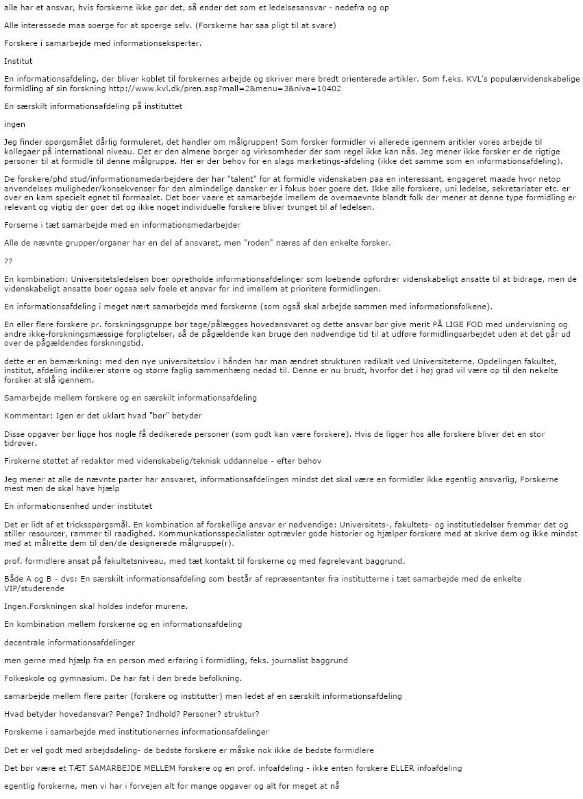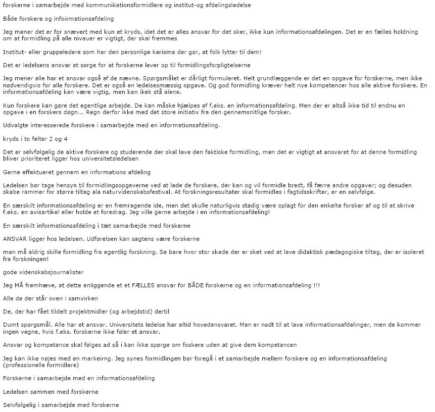 Hvem bør have hovedansvaret for at "udbrede kendskab til videnskabens metoder og resultater" ved dit universitet (kun én markering)? - Andre